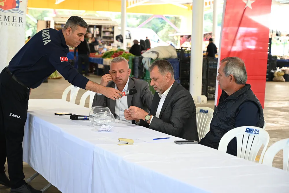 Kura çekimine, Kemer Belediye Meclis Üyeleri Mustafa Bilici ile Mustafa Çelik, Kemer Belediye Tekirova Mahalle Sorumlusu Recep Yılmaz, Kemer Belediye Zabıta Müdürü Erhan Kurtoğlu ve pazar esnafı katıldı.