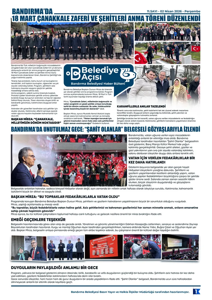 Bandırma Belediyesi'nin Haber Bülteni 'Belediye Açısı'nın 11. Sayısı Yayınlandı